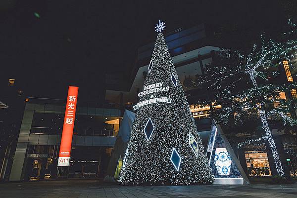 是的沒錯現在我們來到信義區的地表今年在 新光三越信義新天地這次有廣場最高的17米的萬花筒耶誕樹